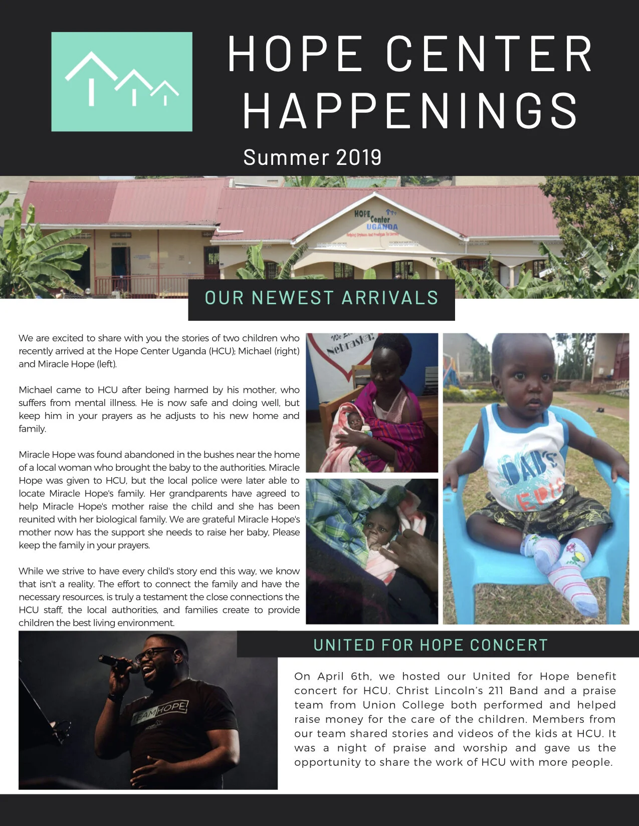 Newsletter for the Hope Center Uganda outlining the spring quarter activities